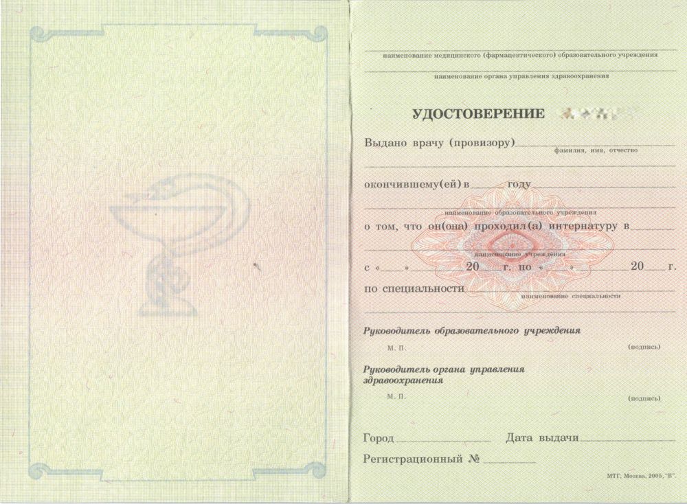 Удостоверение интернатура 2005-2012