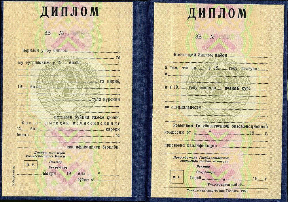 Диплом СССР республики Узбекистан