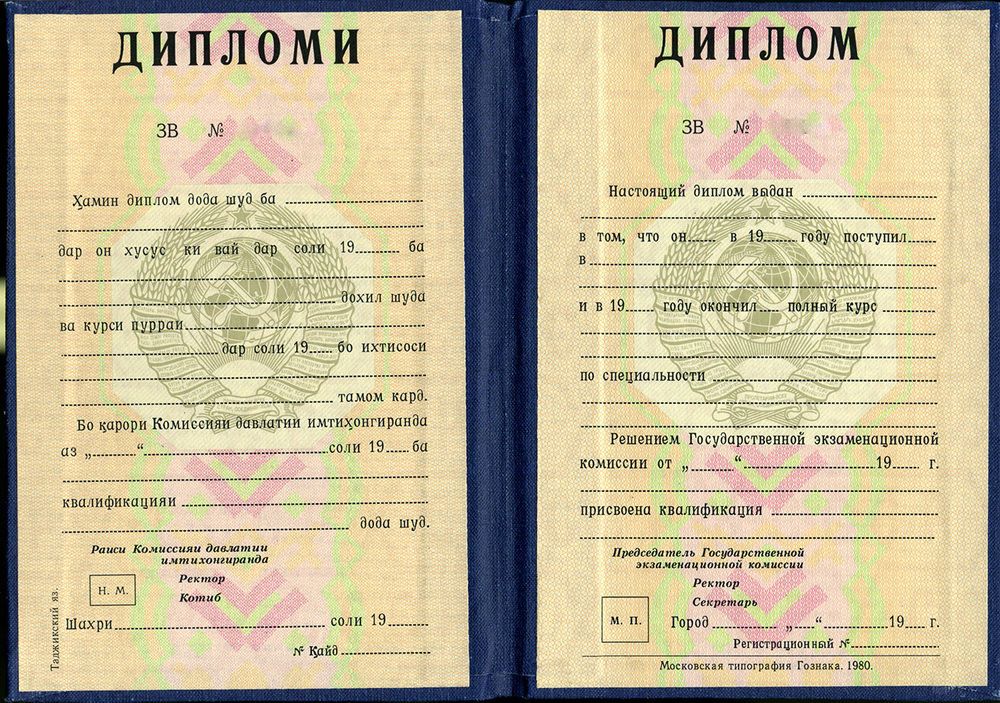 Диплом СССР республики Таджикистан
