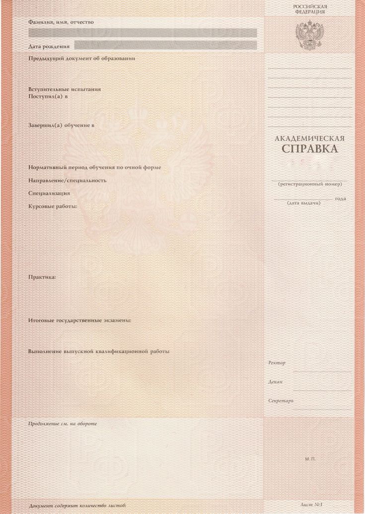 Академ справка ВУЗ до 2014